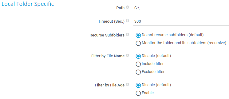 • Monitor the folder and its subfolders (recursive): Monitor the folder and all of its subfolders.